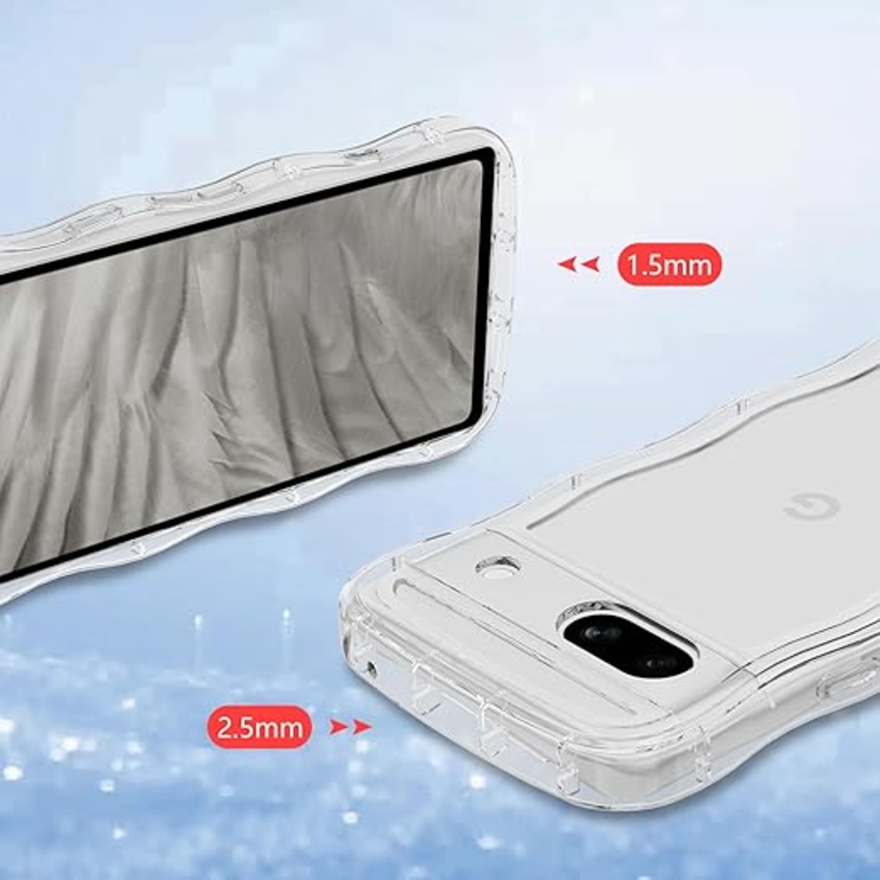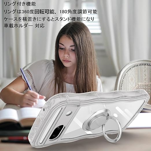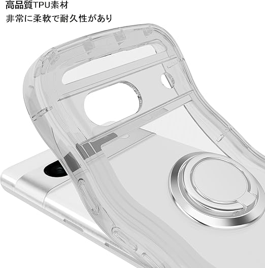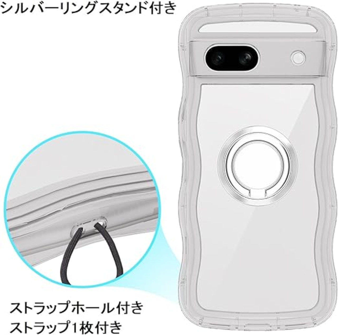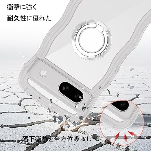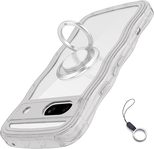 Google Pixel 7A用ケースクリア リング付き グーグルピクセル 7aウェーブ 純透明 マグセフ 可愛い [シルバーリングスタンド付き!]マツと感 TPU 耐衝撃 超軽量 極薄 透明 黄ばみなし 滑り止め pixel7aかわいいうねうね 韓国 人気 ストラップホール付きなみなみ カバー・ピクセル 7Aクリア a