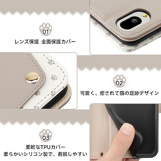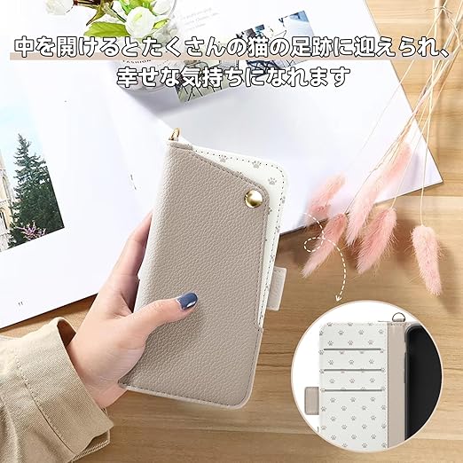 【対応機種】シンプルスマホ6, シンプルスマホ7, BASIO active2, BASIO active, SHG09,SHG12専用(5.7インチ) ご購入前に、ぜひ持っている携帯の機種を確認してください。 手帳型の中を開けるとたくさんの猫の爪に迎えられ、幸せな気持ちになれます。 同色ストラップもついているので、落とす心配も減らせそうです。上下にストラップ用の穴があるので、ネットストラップ(別売り)をつければポーチ型にもなるし、片側だけ使用することもできる。