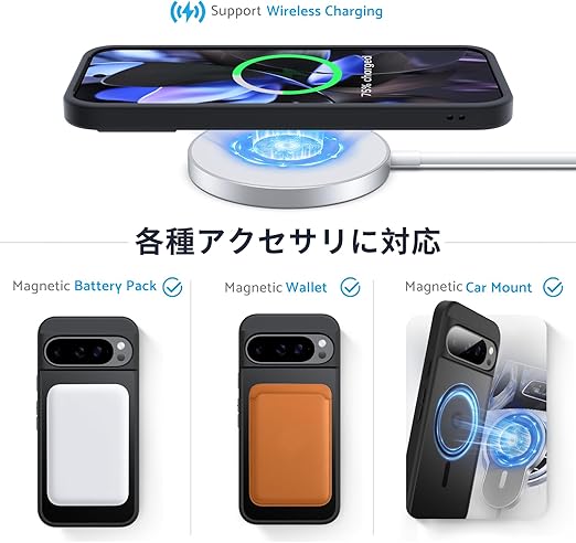 【Magsafe対応】 このPixel 9pro XLのケースは、内部に強力なN52磁石を備えており、Magsafe充電と互換性があります。完璧に配置された磁石により、いつでもどこでも高速ワイヤレス充電が可能で、ケースにピッタリフィットします。超強力な吸着力で、どんなに振っても落ちません。Google Pixel 9pro XLの専用ケース(Pixel9、Pixel9 Proには非対応)。