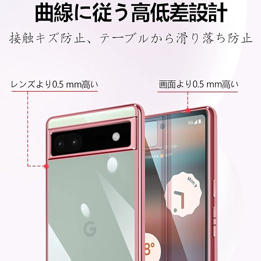 Google Pixel 6A ケース クリア メッキ加工 耐衝撃 薄型 軽量 米軍MIL規格取得 Pixel6a カバー バンパー 人気 TPU (ローズゴールド) a