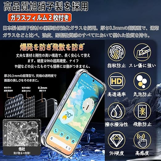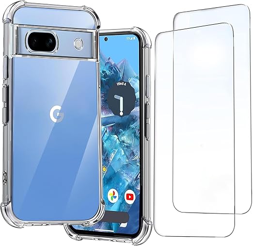 Ausrann Google Pixel 8a ケース+[2枚] グーグルピクセル 8a ガラスフィルム 日本旭硝子製 9H硬度 自動吸着 耐指紋 撥油性 飛散防止処理 貼付簡単 Pixel 8a カバー バンパー クリア 透明 ストラップホール付き シリコン TPU 耐衝撃 米軍MIL規格(2枚ガラスフィルム+ 1枚8aケース) a