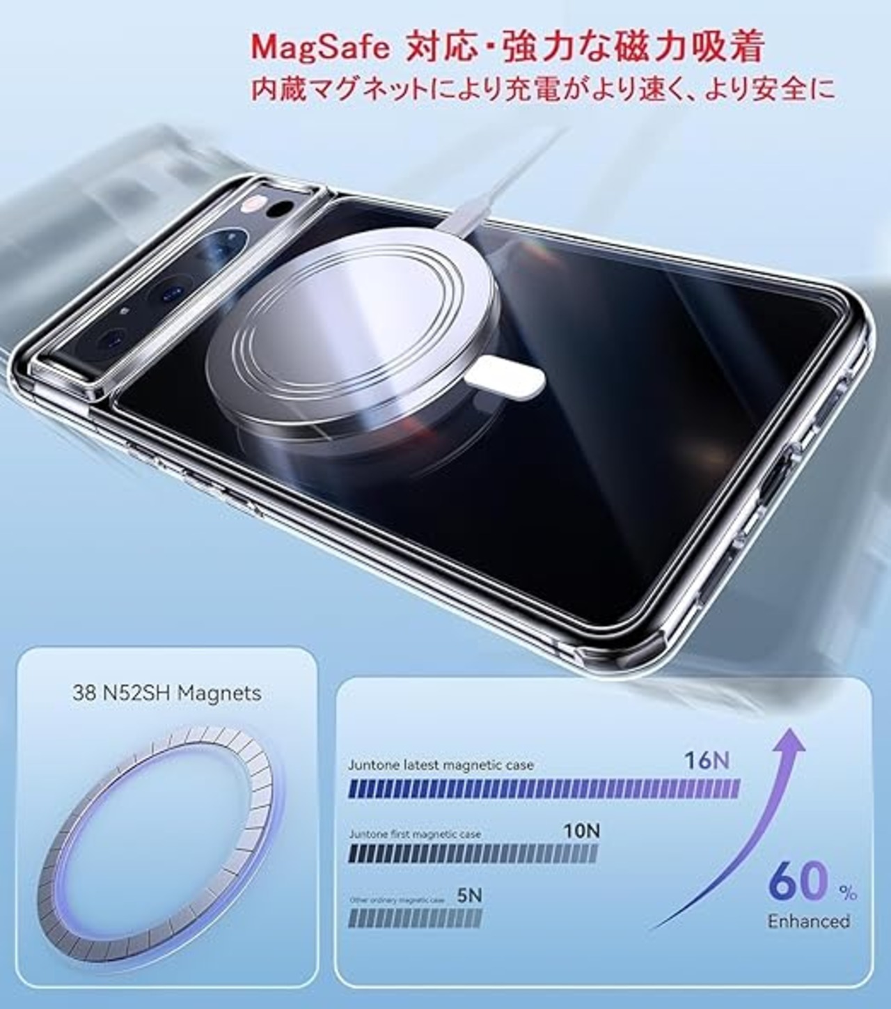 【MagSafe対応】最新型の強力なマグネット搭載で差し込みのいらない超簡単充電を実現し、吸着力、安定性に優れ、いつでもどこでもワイヤレス高速充電を体験できます。また、MagSafeバッテリー、MagSafeカードケース、Mag