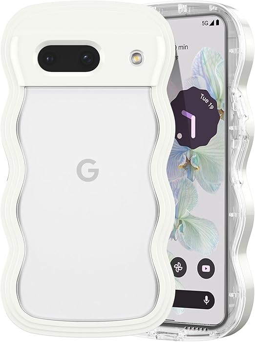 QLTYPRI Google Pixel9 ケース Pixel9 Pro ケース クリア ウェーブ ピクセル 9 ソフト TPU うねうね 透明 ケース おしゃれ 韓国 可愛い 薄型 軽量 耐衝撃 ピクセル9 波状フレーム スマホケース ワイヤレス充電対応 ストラップホール付き グーグルピクセル9 なみなみ カバー(Google Pixel 9/9 Pro、 ホワイト) a