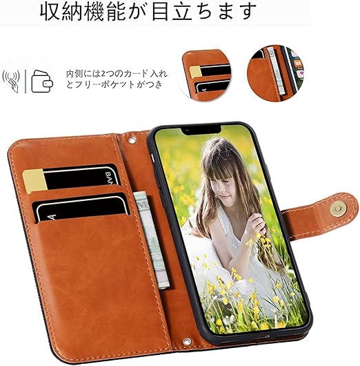 ★【高品質素材製】】高品質のデニム +優しい裏面(柔軟なTPUカバー)と組み合わせ、衝撃吸収機能あり、しっかりの二重保護でお携帯を守り抜きます。