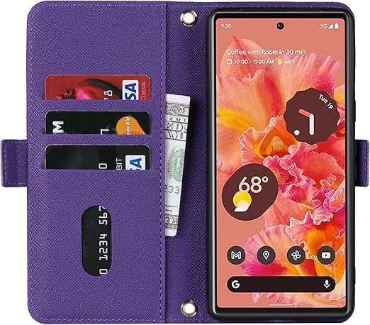 for Pixel 6A ケース 手帳型 Google pixel6a 財布型 通用 携帯カバー バッグ マグネット留め具 肩がけ 首掛け 斜め掛け カードケース SunYoo Case カード収納 横置き スタント PUレザー for Google Pixel 6A パープル b