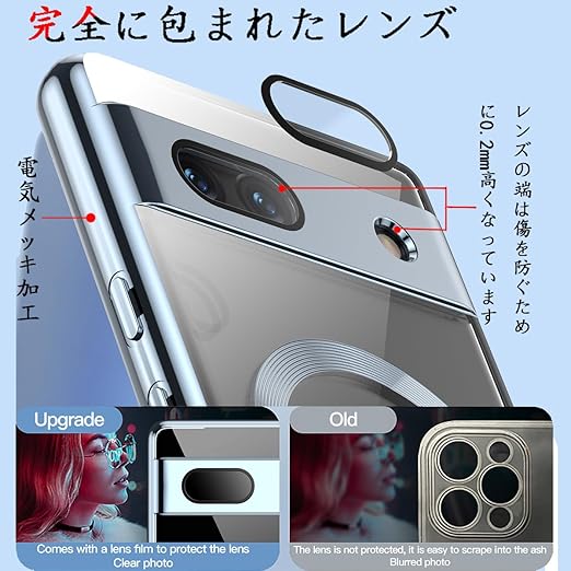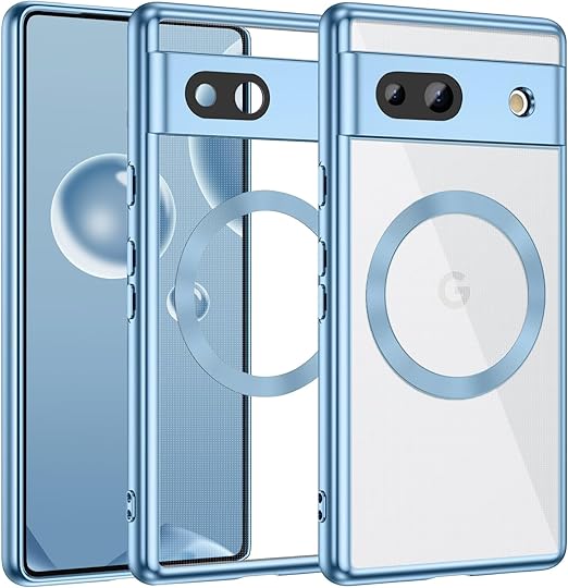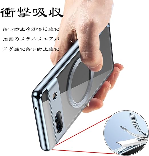 MuZiF Google Pixel 8a 用 ケース クリア メッキ加工 Magsafe対応 永久磁石 レンズ保護 TPU ソフトケース 薄くて軽い 人気 耐衝撃 携帯カバー スマホケース ピクセル 8a クリアケース (Google Pixel 8a,ブルー a