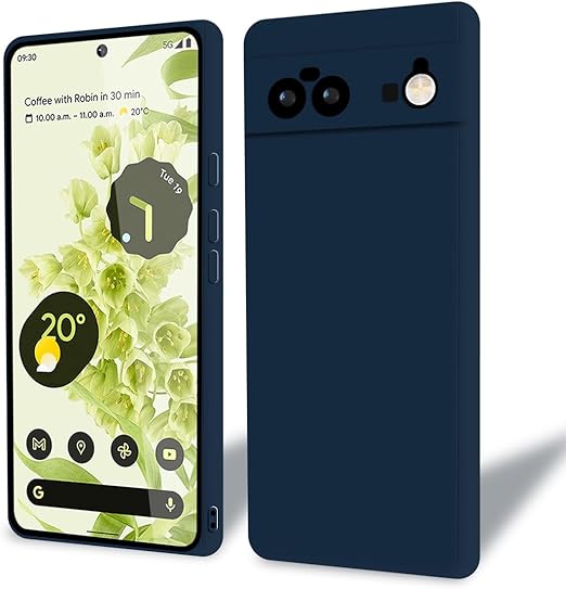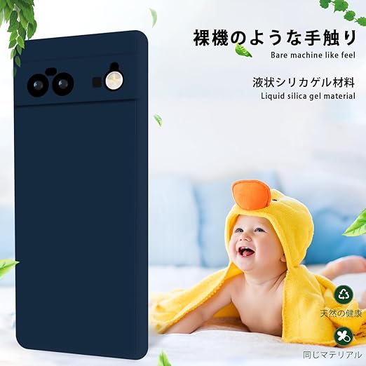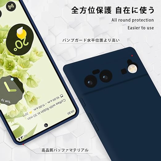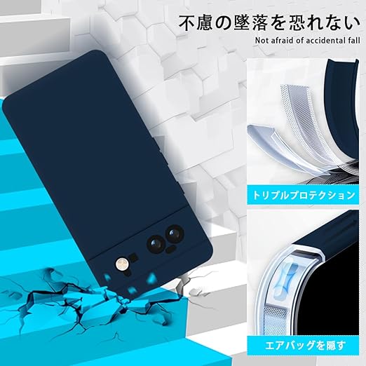 【Majiyana】Google Pixel 6 ケース シリコン スリム ピクセル 6 カバー 超薄型 衝撃吸収 軽量 米軍MIL規格 ワイヤレス充電 指紋防止 ストラップホール付き (ネイビーブルー) a