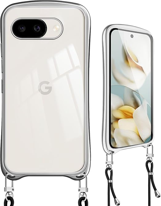 Google Pixel 9a 用 ケース ショルダー クリア ピクセル9a カバー 斜めかけ 縄掛け 肩掛け 首掛け ストラップ付き TPU バンパー耐衝撃 メッキ加工 薄型 軽量 韓国 可愛い かわいい Pixel9a 用 スマホケース シルバー a