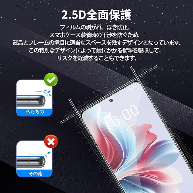 【2+2枚】「日本旭硝子 硬度9H」ガラスフィルム OPPO Reno11 A 用 フィルム 保護フィルム 強化ガラス 液晶画面保護,高透過率/気泡ゼロ,指紋防止/衝撃吸収機能付保護、簡単貼り付けガイド枠付き a