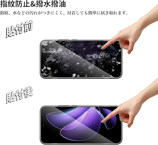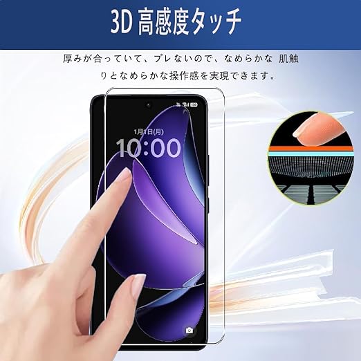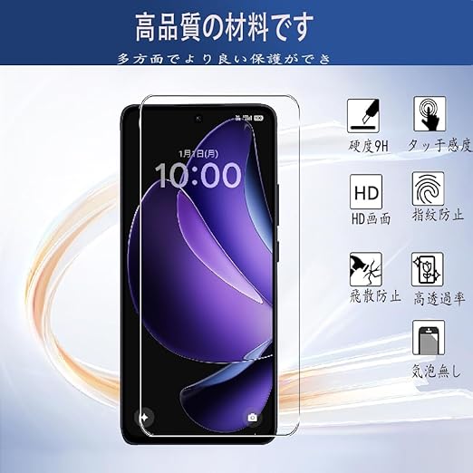 【特徴1】2.5Dラウンドエッジ加工、HD画面、硬度9H、透過率99%、撥油性 疎水性 指紋防止 耐衝撃、気泡ゼロ 貼り付け簡単な保護フィルム です。