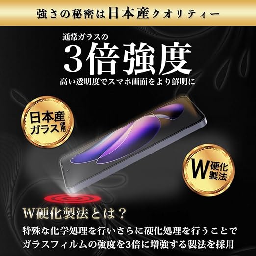 Hy+ OPPO Reno13A 強化ガラスフィルム CPH2699 / A501OP 対応 9H硬度 W硬化製法 一般ガラスの3倍強度 全面保護 全面吸着 a