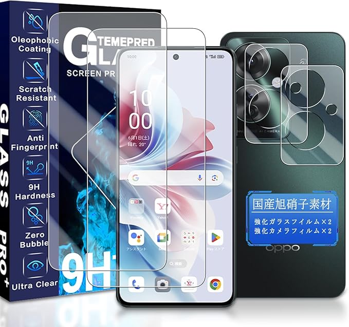 JCJCLY 対応 OPPO Reno11 Aガラスフィルム 6.7インチ【2枚強化ガラス+2枚カメラフィルム セット】国産旭硝子素材製 Reno11 A 保護 フィルム + OPPO Reno11 A レンズフィルム 「硬度9H 耐衝撃 飛散防止 衝撃吸収 厚さ0.26mm超薄型 高透過率 高感度 ラウンドエッジ加工 超高質感 指紋防止 貼り付け簡単 自動吸着 気泡ゼロ 」JCOPR1122 a