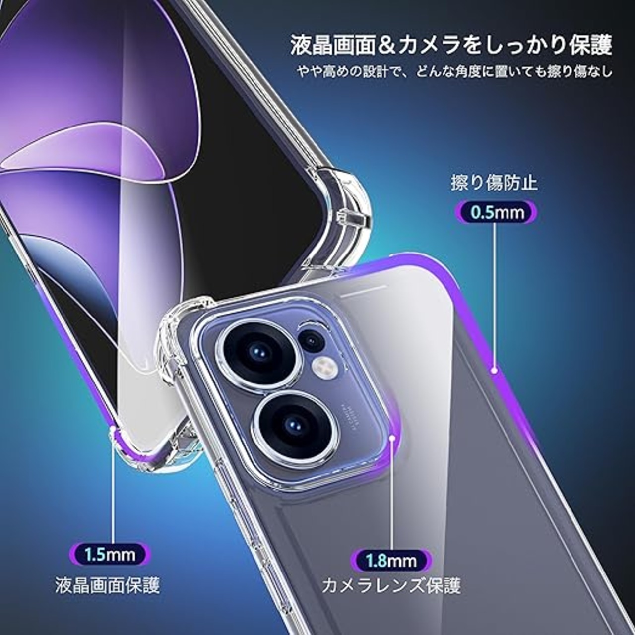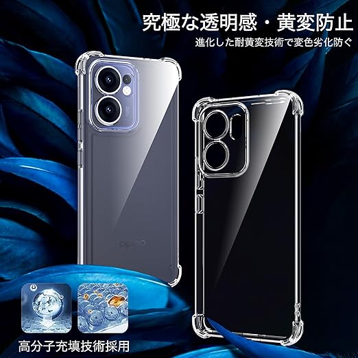【驚くほどの透明度・黄変防止強化材質】ドイツ製バイエルTPU素材や高品質のPC素材を採用。TPU高分子にUV剤を添加し、黄変防止レベルは4.5級を獲得。高透明度ポリカーボネート素材で、OPPO Reno13A本来の美しさと色をそのままに生かし、スマホ本体の高級感にも劣らない美しさです。長時間使用しても光沢感と透明感を保ちます。
