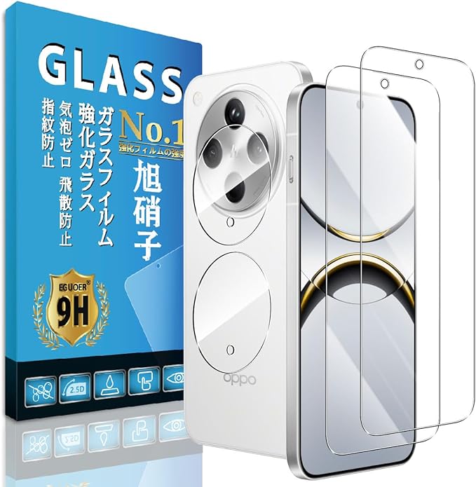 Eguoer 対応 OPPO Find X8 フィルム 指紋認証【2+2枚セット 国産AGC旭硝子】対応 OPPO Find X8 ガラスフィルム (2枚) + レンズ フィルム (2枚) 保護フィルム ガラス 高硬度表面硬度9H 気泡ゼロ指紋防止 飛散防止 自?吸着 保護シート 防塵 撥水撥油YSPPOX8FL a