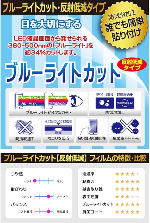 目に有害といわれるブルーライトを34%カット!目に優しく疲れにくい!『ブルーライトカット(非光沢)の保護フィルム』
