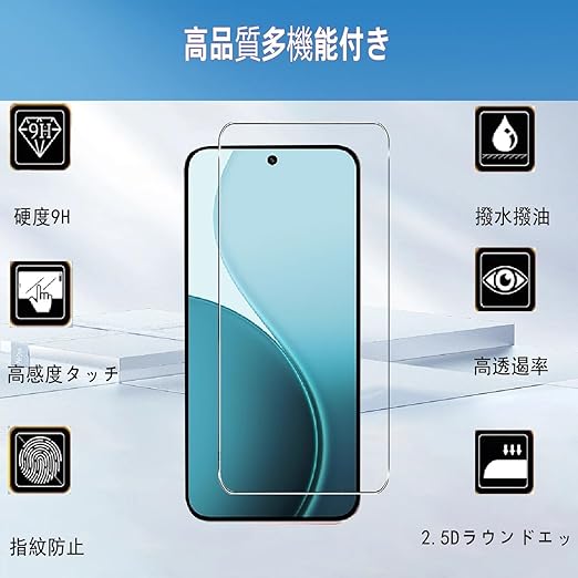 【特徴1】2.5Dラウンドエッジ加工、HD画面、硬度9H、透過率99%、撥油性 疎水性 指紋防止 耐衝撃、気泡ゼロ 貼り付け簡単な保護フィルム です。