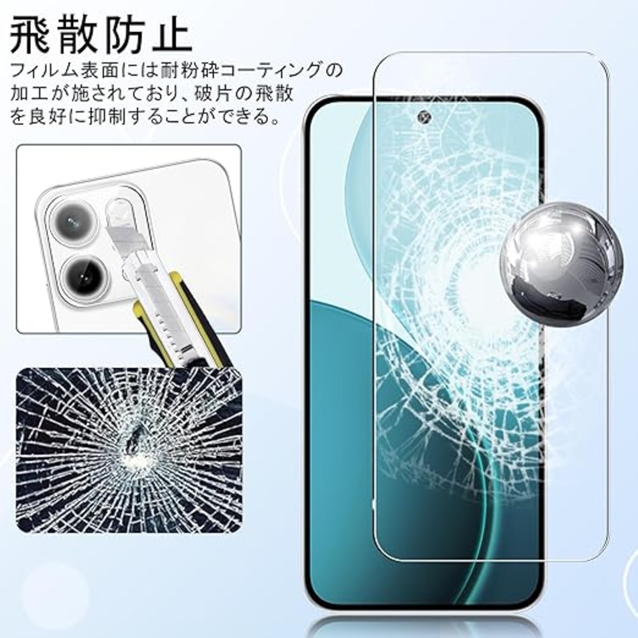 硬度9H·飛散防止:9H高硬度のガラス材質を採用し、ハードコート加工により外部からの衝撃を吸収し、画面へのダメージを最小限に抑える。破片の飛