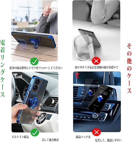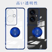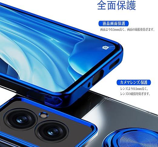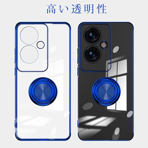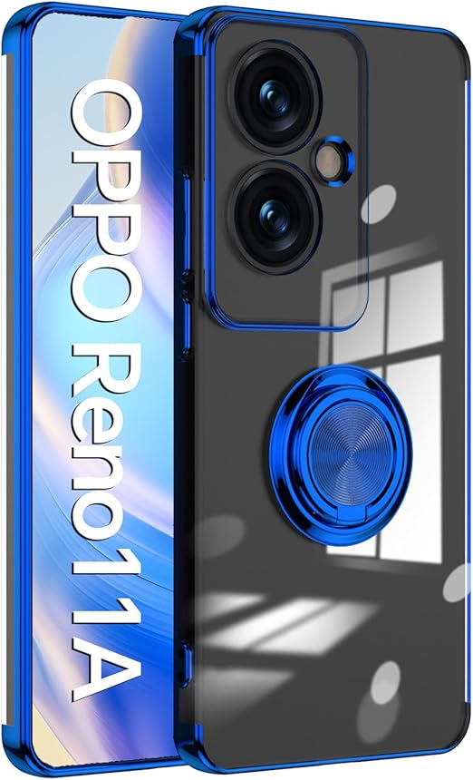 OPPO Reno11 A 用 ケース A401OP CPH2603 バンパー 透明TPU 耐衝撃 青メッキ加工 リング ストラップホール付き スタンド機能 車載ホルダー対応 滑り止め 落下防止 (ブルー) a