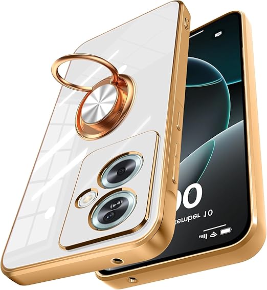 OPPO A79 5G 用 ケース リング付き 耐衝撃 ストラップホール付き メッキ加工 米軍MIL規格 透明 衝撃吸収 スタンド機能 おしゃれ TPU 車載ホルダー対応 オッポA79 5G カバー 白 Q-6DZH-05-02 a