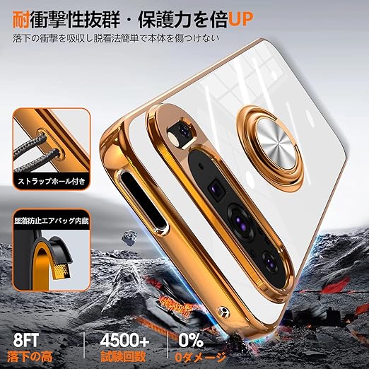 【リング付き機能】:ケースを横置きにするとスタンド機能になり、持たず動画鑑賞などを楽しむことができます;リングは360度回転可能、180角度調節可能;一指着る式で、指がリングに通り抜け、片手で携帯を操作でき、落下防止します