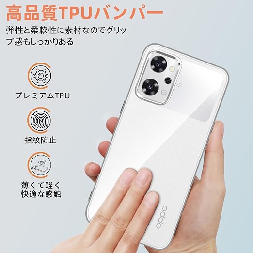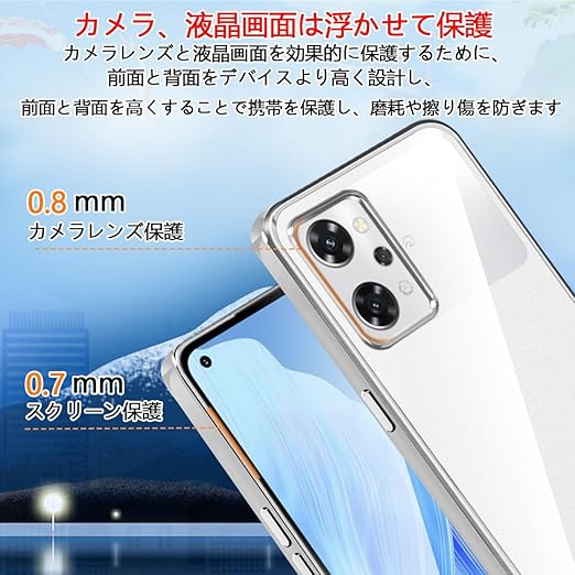 OPPO Reno9 A ケース OPPO Reno7 A ケース クリア OPG04 耐衝撃 カバー オッポ リノ9 A スマホケース ストラップホール付き メッキ加工 衝撃吸収 軽量 薄型 透明 TPU 携帯ケース (シルバー) a