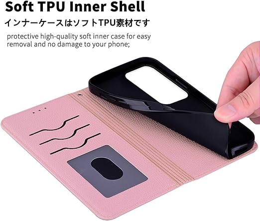 【特徴1:高品質PUレザー】軽量化のスマホケースです。外側カバーには滑り止めのライチ模様のPUレザーを採用します。内側のホルダーは柔軟なTPU素材を採用したソフトケースです。汚れにくくて指紋防止の特徴を持っております。耐衝撃の二重構造で落下の衝撃をうまく吸収します、本体をしっかりと守ります。