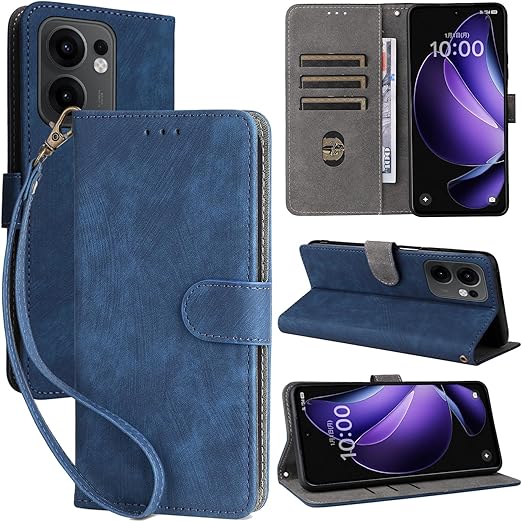 OPPO Reno13 A 用 ケース OPPO Reno13 A 用 手帳型 カバー 財布型 【NOUKAJU】 カードポケット付き 高級 PUレザー 手触りが良い 落下防止 衝撃吸収 耐摩擦 全面保護 耐磁性RFID機能 マグネット式 カード収納 スタンド機能 軽量 薄型 ストラップ付き スマホケース (ブルー) a