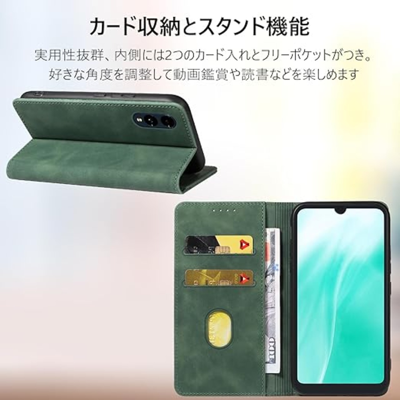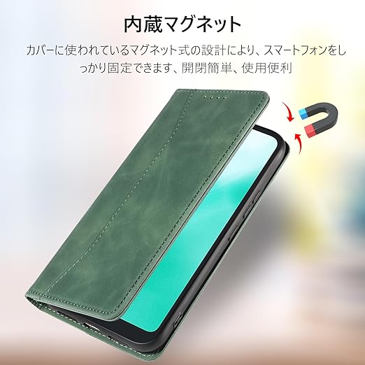 KWATUNG arrows we2 用 ケース 手帳型 おしゃれ arrows we2 fcg02 用ケース 手帳型 肌感レザー arrows we2 f-52e 用ケース 手帳型 内蔵マグネット 耐衝撃 カード収納 スタンド機能 アローズWE2 用 ケース 手帳型 全面保護 arrows We2 用スマホケース f-52eケース グラスグリーン a