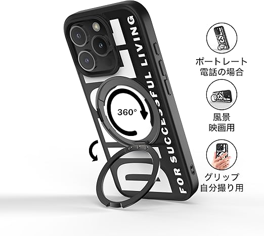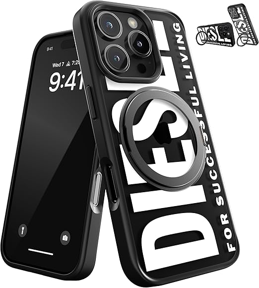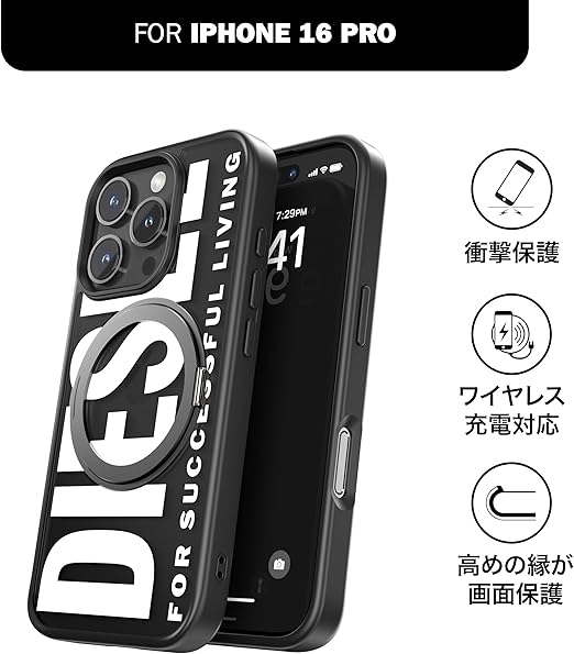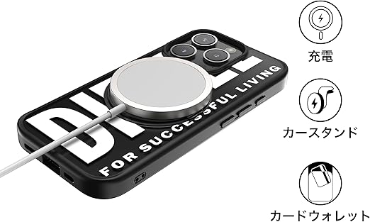 DIESEL iPhone16Proケース Magsafe対応 リング付きケース おしゃれ ブランド ロゴ デザイン 黒 ( ディーゼル iPhone 16 Pro カバー マグセーフ ブラック/ホワイト ) a
