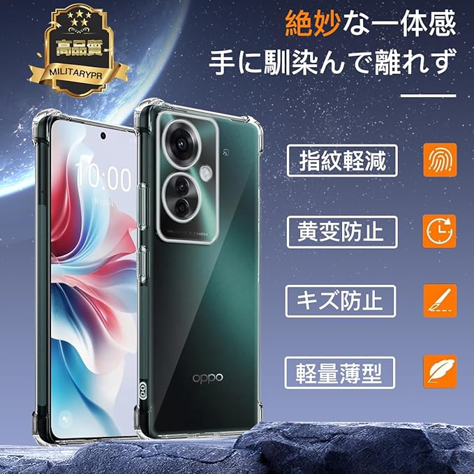 Fierymoto OPPO Reno11 A ケース クリア Reno11 A 用 カバー 透明 MIL規格 耐衝撃 黄変防止 OPPOReno11 A 用 ケース 手帳型 ワイヤレス充電対応 SGS認証 透明 ケース スレ傷防止 四隅滑り止 散熱加工 軽薄型 レンズ保護 PC背面 Reno 11A 専用 保護ケース 防指紋 手触り良い 取付簡単 a