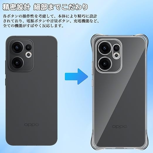 For OPPO Reno13 A ケース クリア OPPO Reno 13A 対応 ケース カバー TPU素材 耐衝撃 衝撃吸収 全面保護 カメラ保護 薄型 軽量 Greerass 滑り止め 黄ばみ防止 指紋防止 透明 耐久 インストール簡単 a