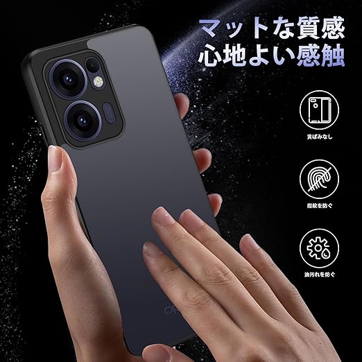 Hinnwer OPPO Reno13 A 5G ケース 用, 半透明 マット 保護ケース 米軍MIL規格 スマホカバー PC+柔軟なTPU素材 スマートフォン 耐衝撃 指紋防止 滑り止め 耐久性 カバー 黄ばみなし レンズ保護 OPPO Reno13 A 5G 用 (マットブラック) a