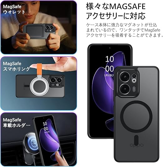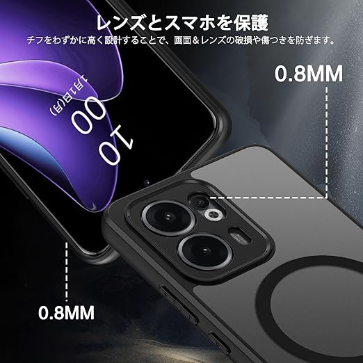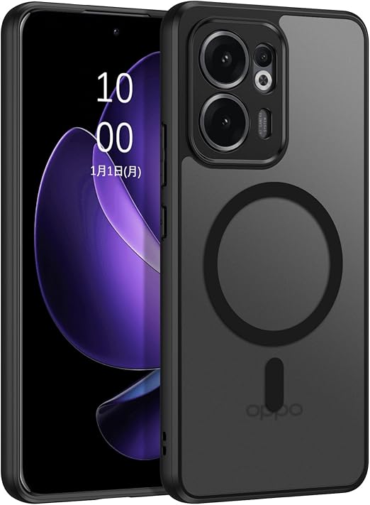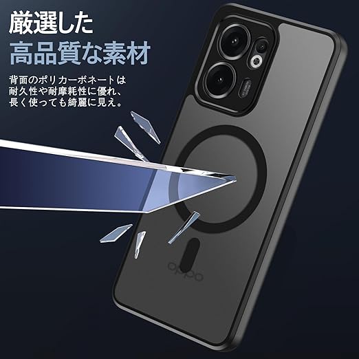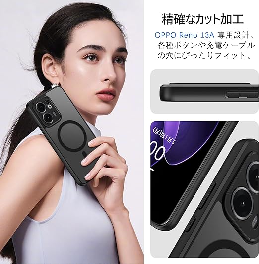 BENTOBEN OPPO Reno 13A ケース 半透明 MagSafe対応 耐衝撃 米軍MIL規格 軽量 薄型 指紋防止 黄変なし マット 強力マグネット搭載 車載スマホホルダー対応 ストラップホール付き OPPO Reno13 A スマホケース カバー ブラック a