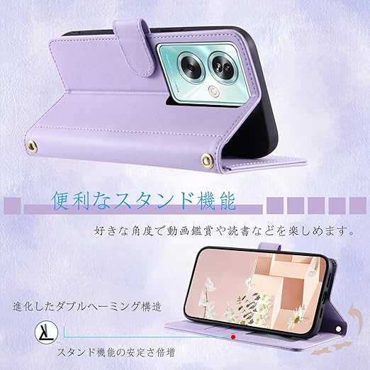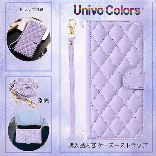 UnivoColors OPPO A79 5G キルティングレザー調 手帳型ケース エレガント 高質PU マグネット開閉式 カード収納機能 スタンド機能 液晶全面保護 レンズ保護 ストラップ付属(パープル) a