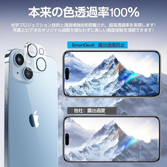 「画期的なガイド枠」SmartDevil iPhone 15 用ガラスフィルム+レンズ保護フィルム 全面保護 極細黒縁あり 防塵 フルースクリーンカバー 超簡単貼り付け 高透過率 米軍MIL規格 落下保護 気泡ゼロ 指紋防止 サラサラ アイフォン15 用 2+2枚フイルムセット a