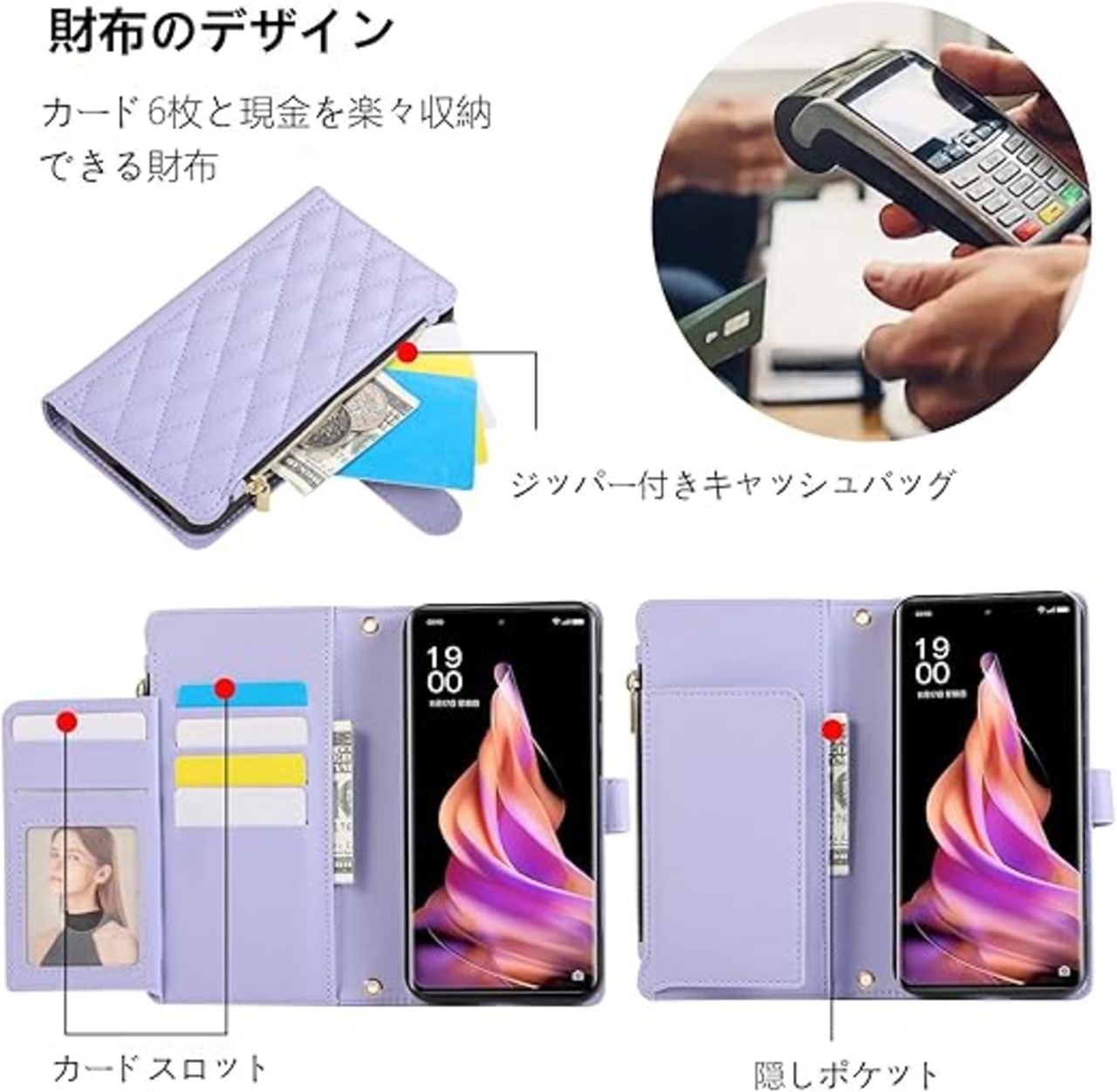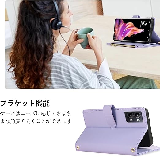 OPPO Reno7 A ケース OPG04 /OPPO Reno9 A ケース おっぽ スマホ Reno9 A ケース 手帳型 OPPO Reno7 A ケース ショルダー 肩掛け 斜めかけ 縄掛けケース 財布型 マグネット開閉 スタンド機能 ストラップ付き キャッシュポケット RFIDブロッキング オッポA9ケース Reno7 A 手帳型ケース Reno9 A カバー [ライトパープル] a