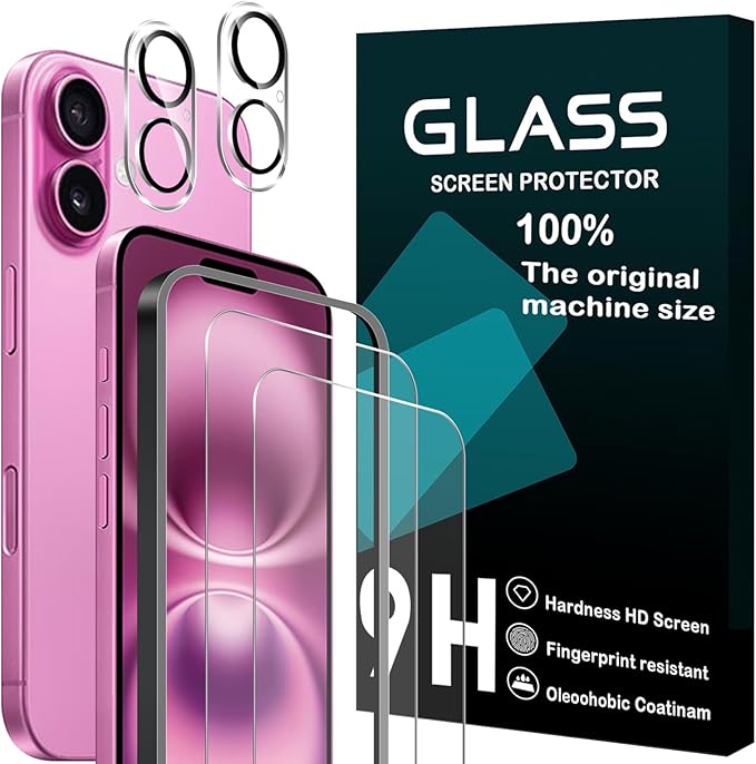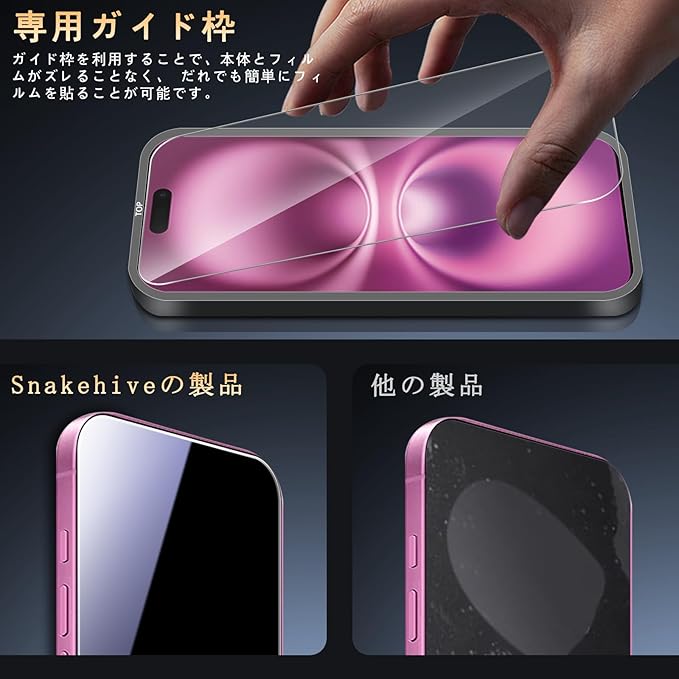 【対応機種】 iPhone 16 ガラスフィルム 2枚 + カメラフィルム 2枚 + ガイド枠 1枚 。(機種の選択には間違いがないよう、ご注文前によくお確かめください。)