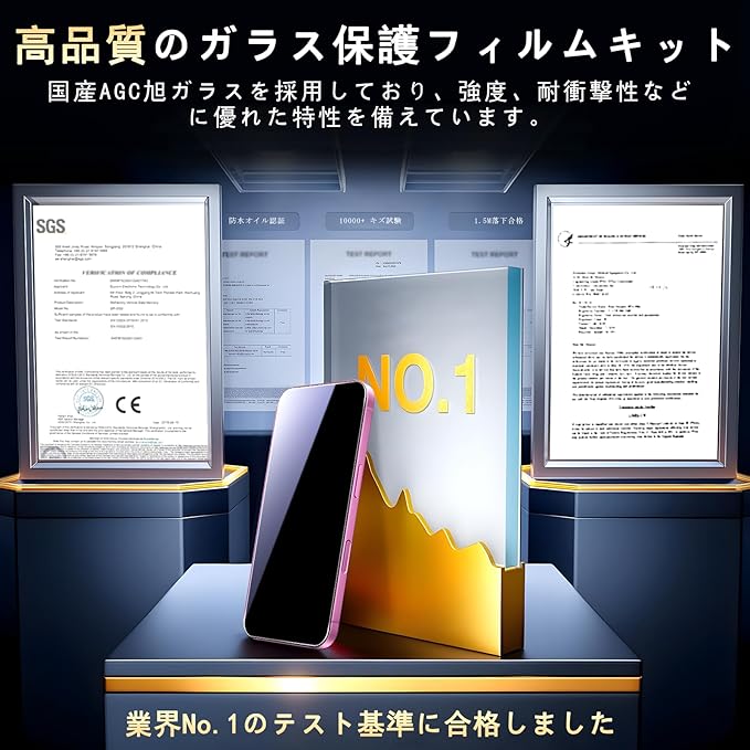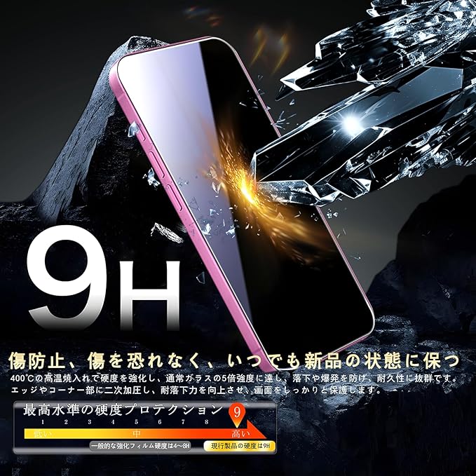 日本旭硝子素材·傷や衝撃に強い·飛散防止】日本旭硝子製ガラス素材採用、表面硬度は9H、