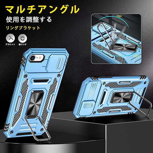 iPhone SE3 SE2 SE 8 7 ケース リング付き 耐衝撃 pc+tpu 車載ホルダー対応 軽量 薄型 擦り傷防止 取り出し易い 360°回転 スタンド機能 リング 携帯カバー ライトブルーLR-10-SE3-04 a