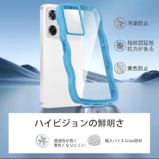 クリア OPPO Reno9 A/OPPO Reno7 A ケース かわいい 波状フレーム うねうね 耐衝撃 OPG04 スマホケース 滑り止め 人気 可愛い カバー 落下防止 ワイヤレス充電対応 (ブルー) a