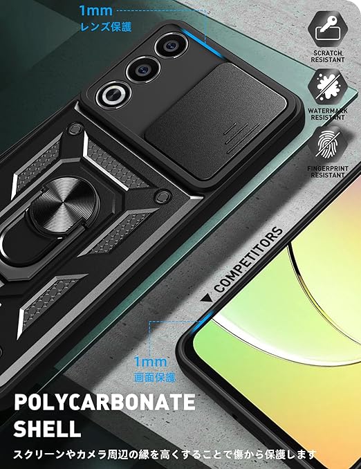『保護性能』 PCバック+TPUバンパー+金属ホールリング、内側TPU素材とハードPCフレームで制作するため、耐久性に優れた、外 部からの衝撃を内部に吸収されて、側に滑り止めの設計で、落下を防止にできます、防指紋