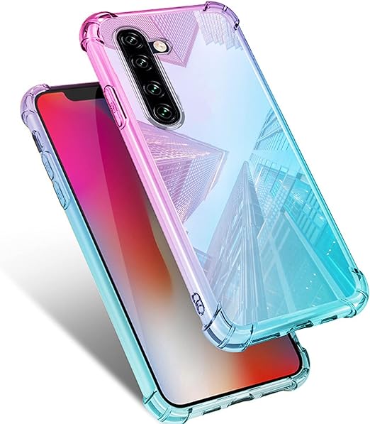 OPPO Reno3 A ケース クリア 耐衝撃 薄型 グラデーション 透明 TPUバンパー 薄型 軽量 取り出し易い 全面保護 カバー 光学メッキ加工 おしゃれ 擦り傷防止 指紋防止 ストラップホール付き スリム ピンク/グリーン MJJ-1044-40-6 a
