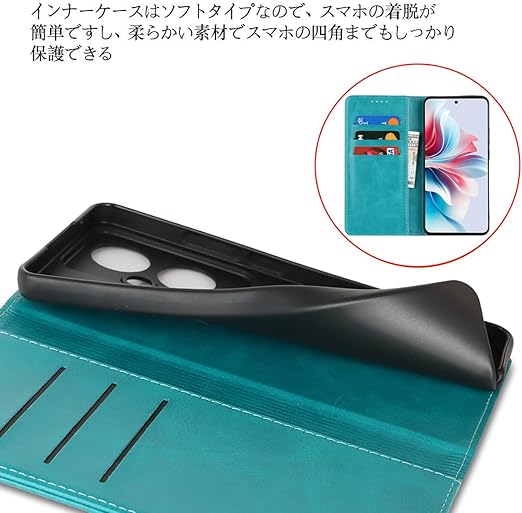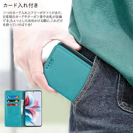 OPPO Reno11 A ケース 手帳型 オッポ Reno11A ケース 楽天モバイル SIMフリー ワイモバイル A401OP SoftBank 全対応 OPPOReno11A カバー オッポRENO11A スマホケース リノ11A 手帳ケース オッポ RENO 11A 適用 iCoverCase マグネット カードケース 携帯カバー カード入れ スタンド 落ち着いた色 レトロ ターコイズ a