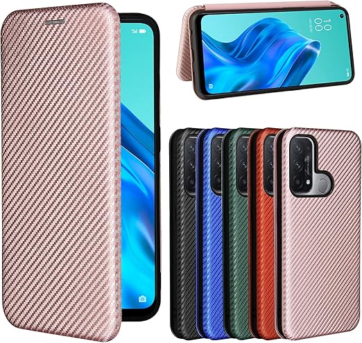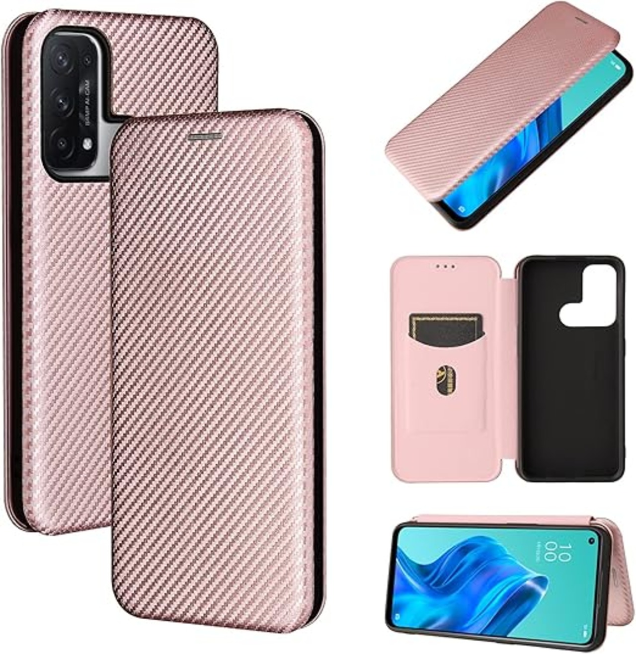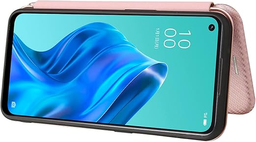Pelanty OPPO Reno 5A ケース 手帳型 炭素繊維調 OPPO Reno5 A 携帯カバー 背面ケース 軽量 薄型 財布型 カード収納 OPPO Reno5A スマホケース マグネット ストラップ付き 耐衝撃 全面保護-ピンク a