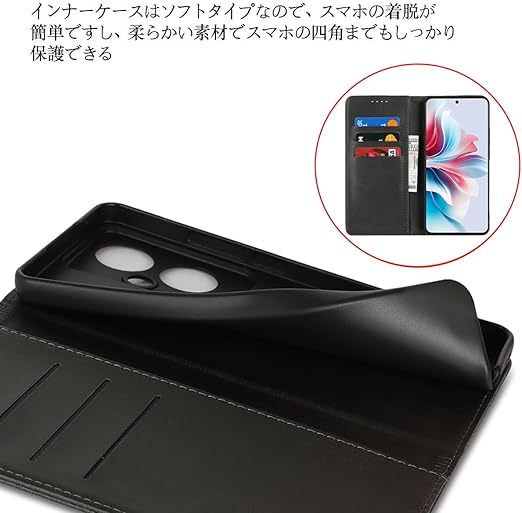 OPPO Reno11 A ケース 手帳型 オッポ Reno11A ケース 楽天モバイル SIMフリー ワイモバイル A401OP SoftBank 全対応 OPPOReno11A カバー オッポRENO11A スマホケース リノ11A 手帳ケース オッポ RENO 11A 適用 iCoverCase マグネット カードケース 携帯カバー カード入れ スタンド 落ち着いた色 レトロ ブラック a