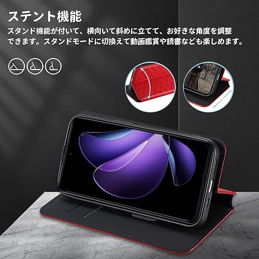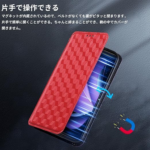 OPPO Reno13 A 5G 用 対応 ケース 手帳型 スマホケース カード収納 スタンド機能 サイドマグネット【HUKWIMO】 全面保護 衝撃吸収 横置き機能 汗や指紋防止 高級PUレザー 擦り傷防止 OPPO Reno13 A 5G 対応 [レッド] a