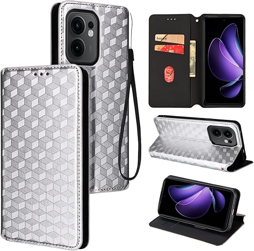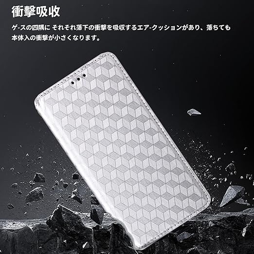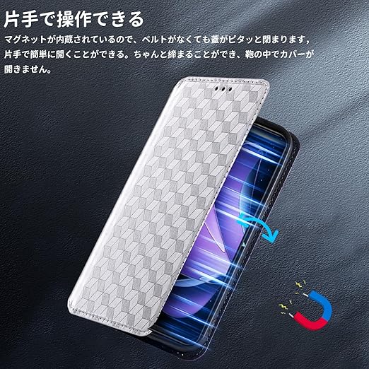 OPPO Reno13 A 5G 用 対応 ケース 手帳型 スマホケース カード収納 スタンド機能 サイドマグネット【HUKWIMO】 全面保護 衝撃吸収 横置き機能 汗や指紋防止 高級PUレザー 擦り傷防止 OPPO Reno13 A 5G 対応 [シルバー] a