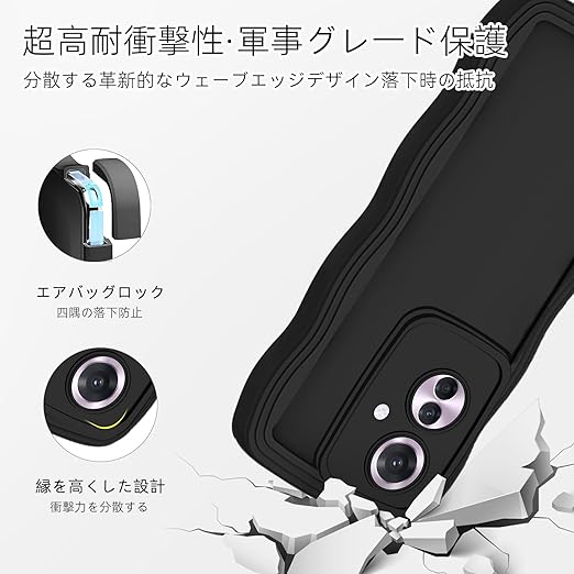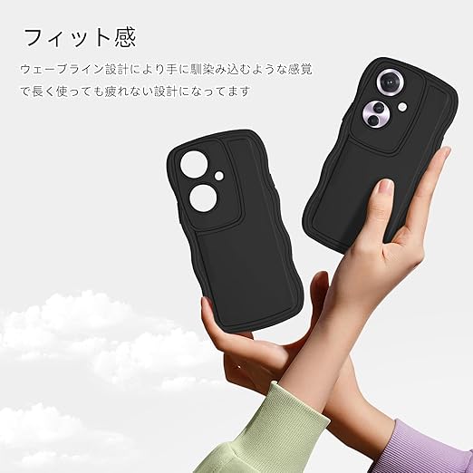 HeeNia OPPO Reno 11A 対応 ケース カバー TPU シリコン質感 耐衝撃 落下防止 取付簡単 カメラ保護 レンズ保護 高級携帯電話ケース OPPO Reno 11A 用 (ブラック) a