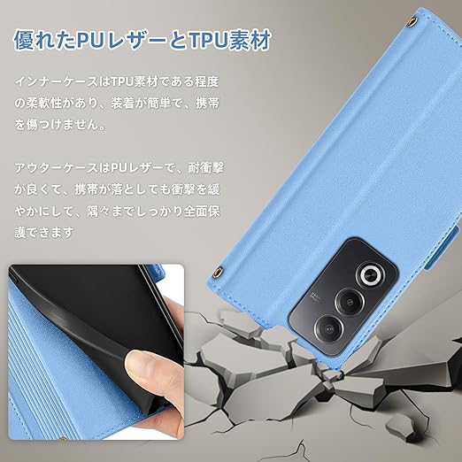 【全面保護】 本ケースは耐久性と柔軟性のあるPUレザーとTPU素材を採用して、見た目も肌触りも良くて、夏でも手汗で変な匂いが出てきてません。そして、キズや汚れに強く、放熱性や耐衝撃が良くて、落としても衝撃を緩やかにして、隅々までしっかり全面保護でき
