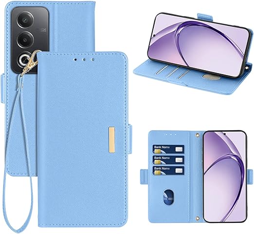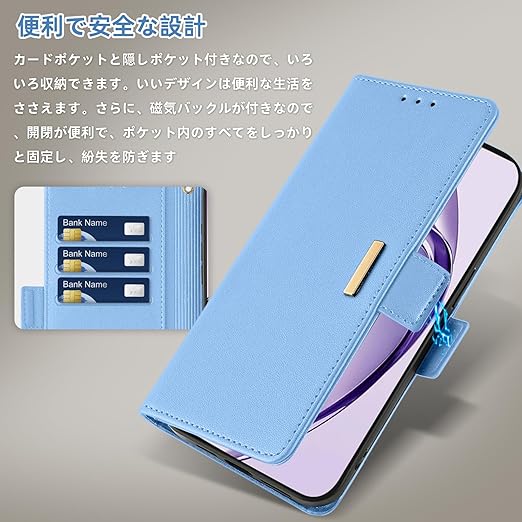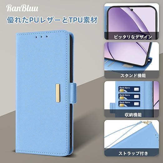 RanBluu コンパチブル OPPO A3 5G ケース 手帳型 オッポ a3 5g 用 レザーケース 携帯カバー スマホケース 財布型 カード収納 マグネット開閉 カメラ保護 横置きスタンド機能 ストラップ付き 耐摩擦 耐衝撃 全面保護(OPPO A3 5G 対応 ブルー) a